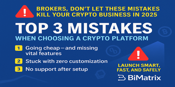 In 2025, the crypto software market is more crowded than ever — and the risks of choosing the wrong platform have never been higher. Many brokers fall into the same traps, and the cost isn’t just financial — it’s your reputation and future growth. Here are the top three mistakes to avoid: